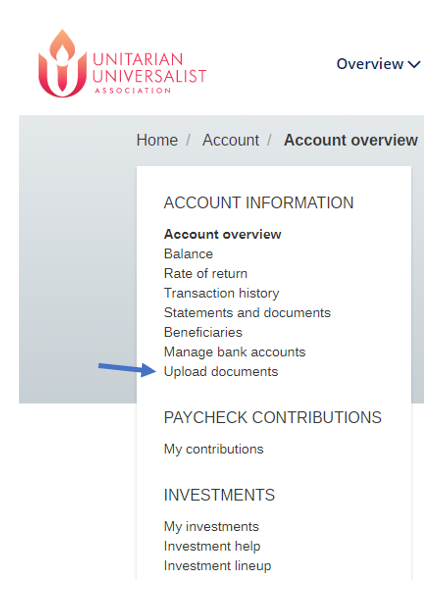 To upload, log in to your Empower account, and in the box on the right, click on Upload a document: