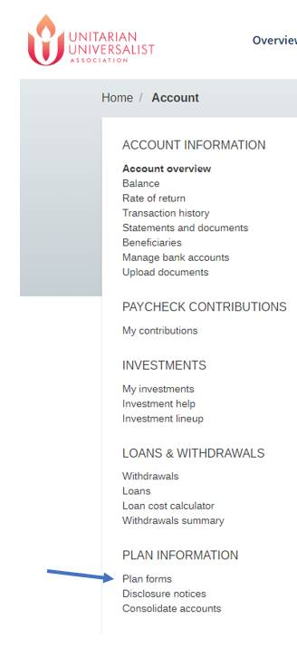 -Click on Account at the top of the page, go to UU Organizations Retirement Plan, and then click on Overview.