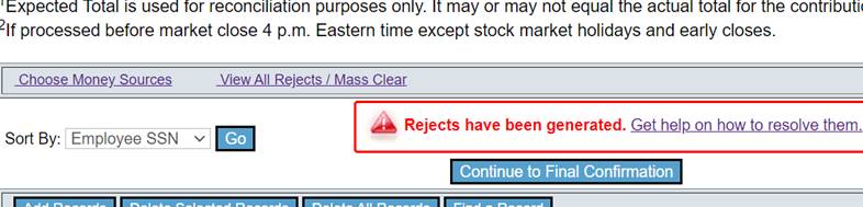 investment options. To mass clear, select “View All Rejects/Mass Clear”, select